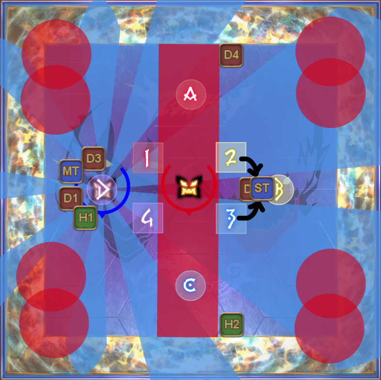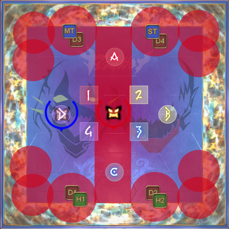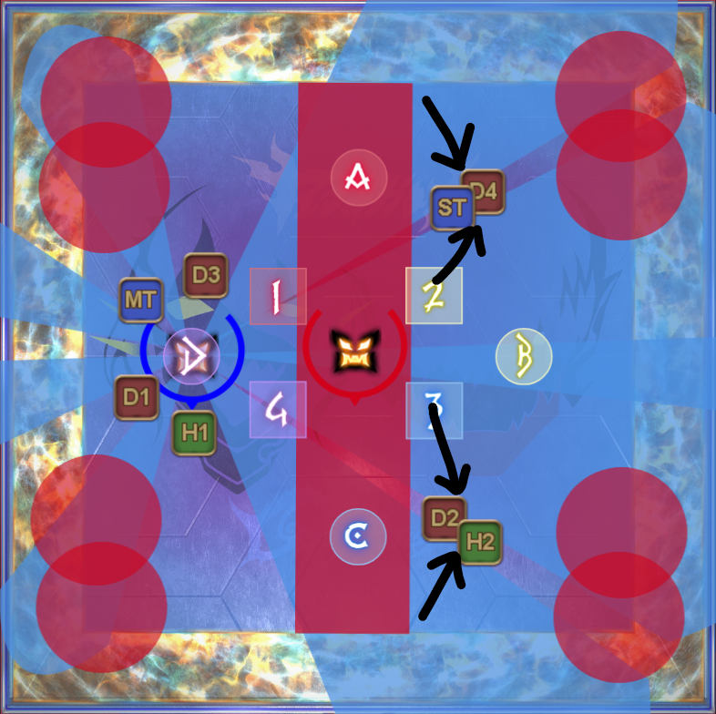After dealing with the proteans, Red Hot will cast Freaky Pyrotation which will create a 2-man stack AoEs on either all supports or all DPSes. This mechanic is straightforward, simply go to your respective corner with your partner to resolve this mechanic.