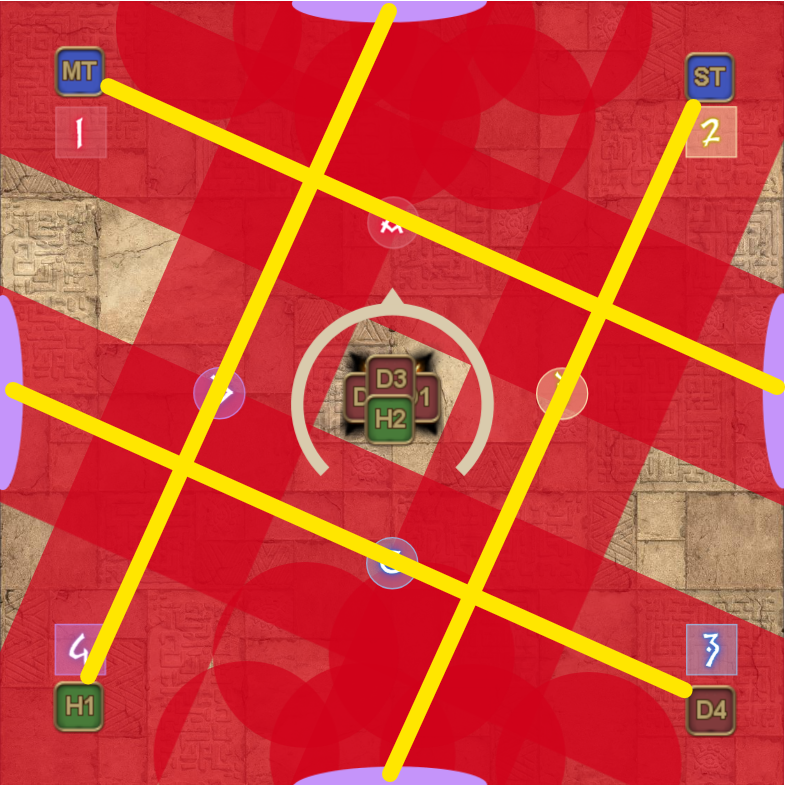 The H1 and D3 should preposition up north, while the H2 and D4 should preposition down south. Everyone else should be dead center, under the boss.