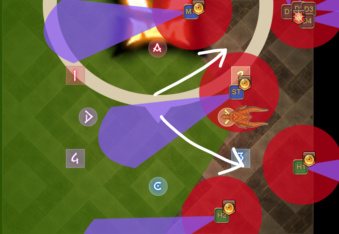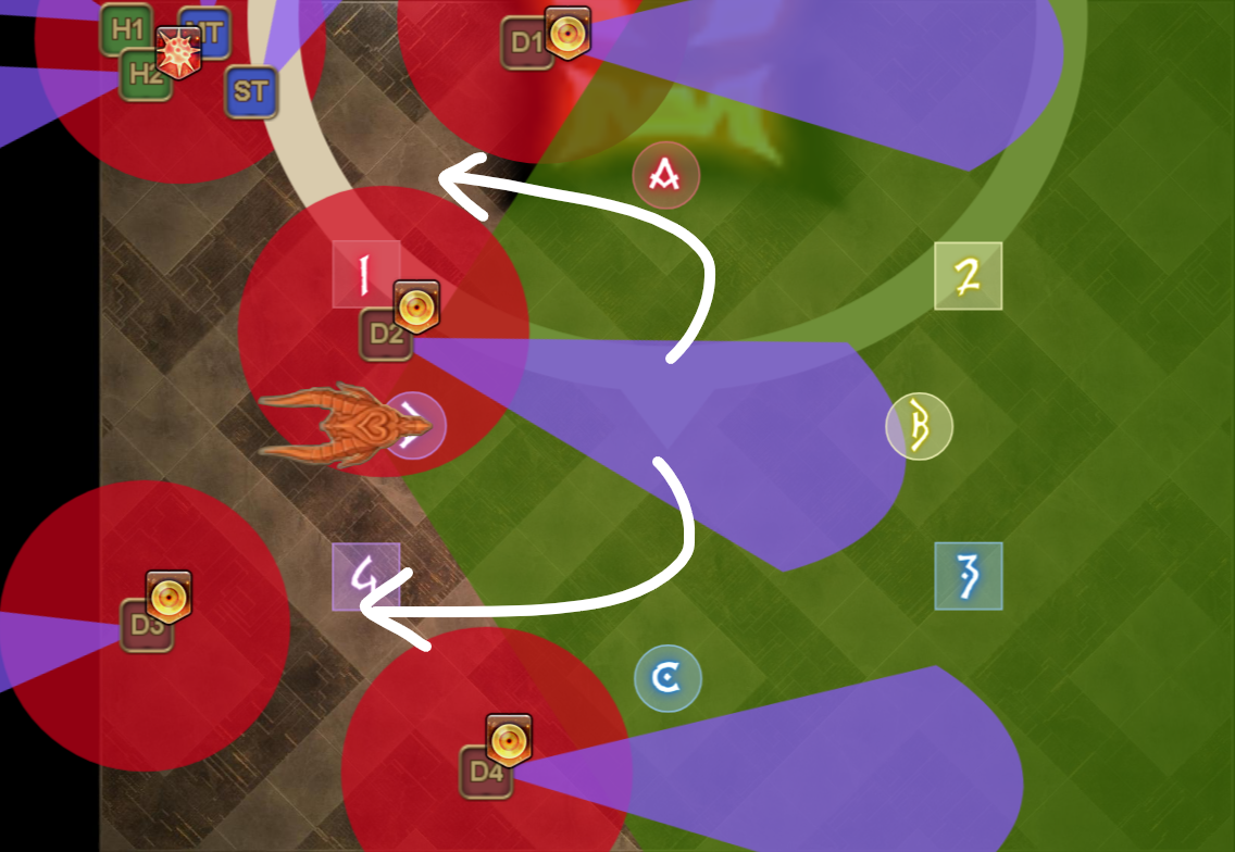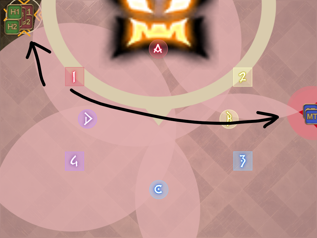 | 4. | As a reference, the image on the right shows all possible safespots for every iterations. Once you're at the edge of the arena, identify the blob closest to you to determine whether the corner or the middle side is safe. Once you're done with this mechanic, the boss will end Act 1 with The Fixer. Heal up and mitigate as necessary. | ![]() |