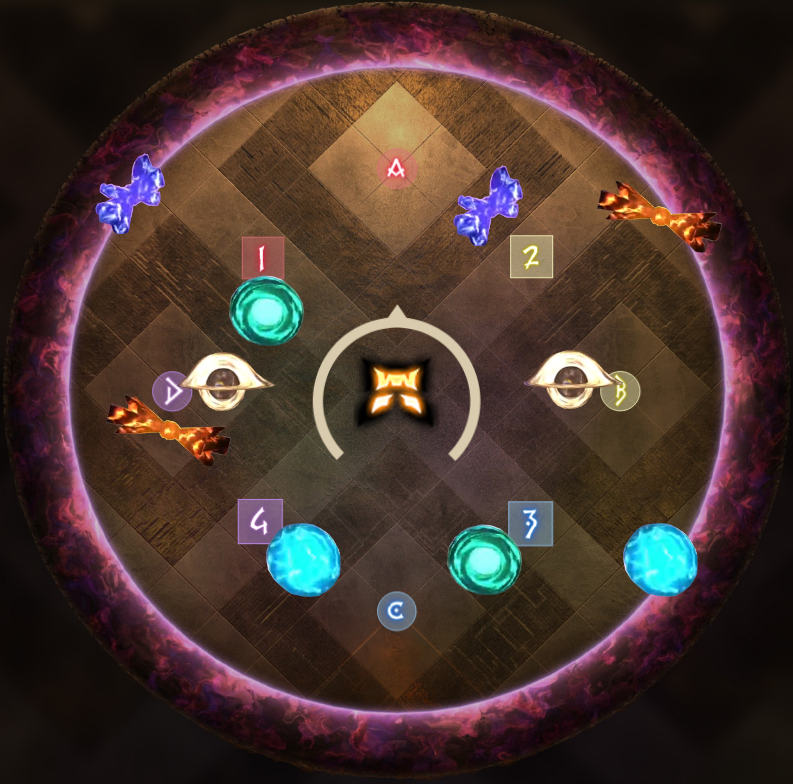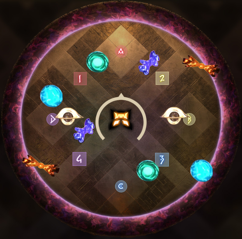 Now, there are two problems presented in this mechanic. As you can see in the examples above, one side has four objects that are evenly distanced. If all four of them go off at the same time, then nowhere in the arena would be safe. Ideally, you want a donut as a safe spot while isolating one of the cones.