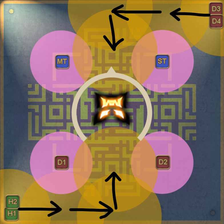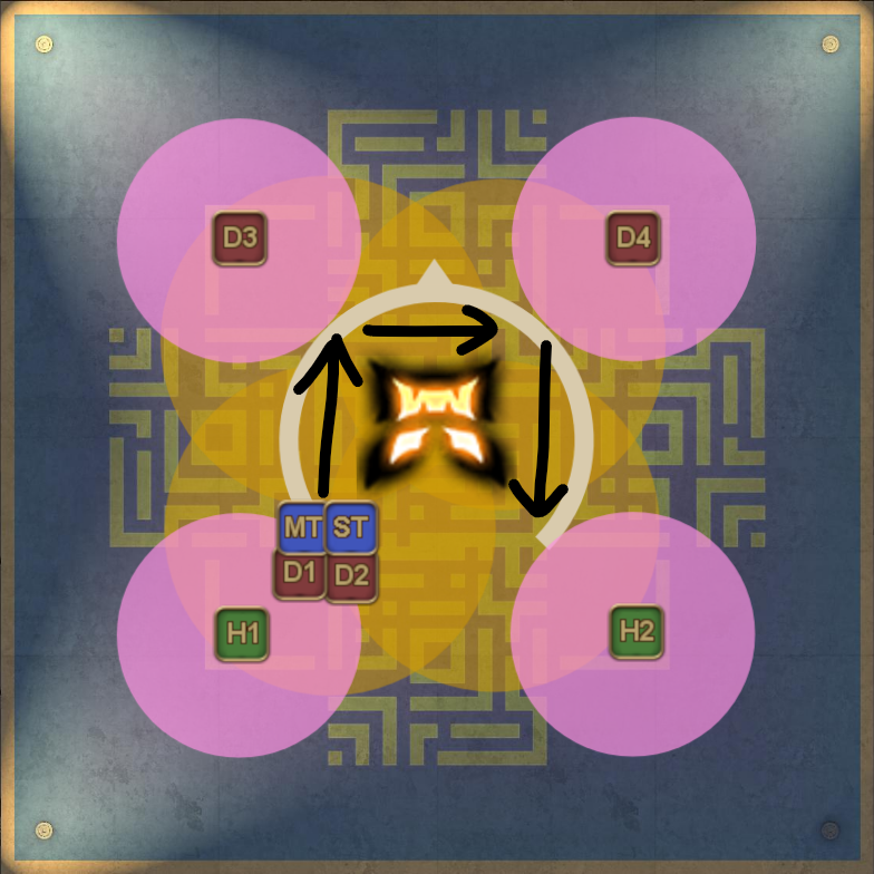 Three proximity markers will appear around the arena in a triangle shape, in the style of DSR P7 Gigaflares. For those unfamiliar with DSR P7, the proximity markers will appear one by one, in the order that they are going to explode, which means this is essentially a 3-to-1 dodge mechanic.