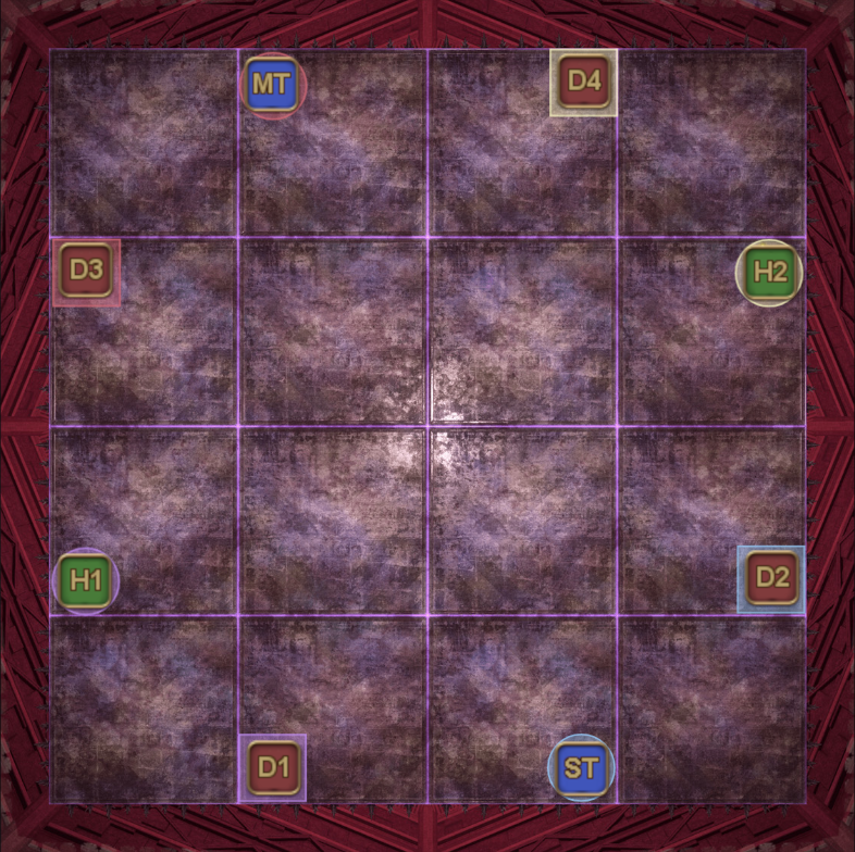 Each waymark has a player designated to it, which is the spot where the players drop their AoE on. Once you see the red marker on top of your head, you will have exactly 5 seconds to run to your waymark in order to drop off the bomb. The placement does not require precision, as long as the AoE is dropped inside the waymark.